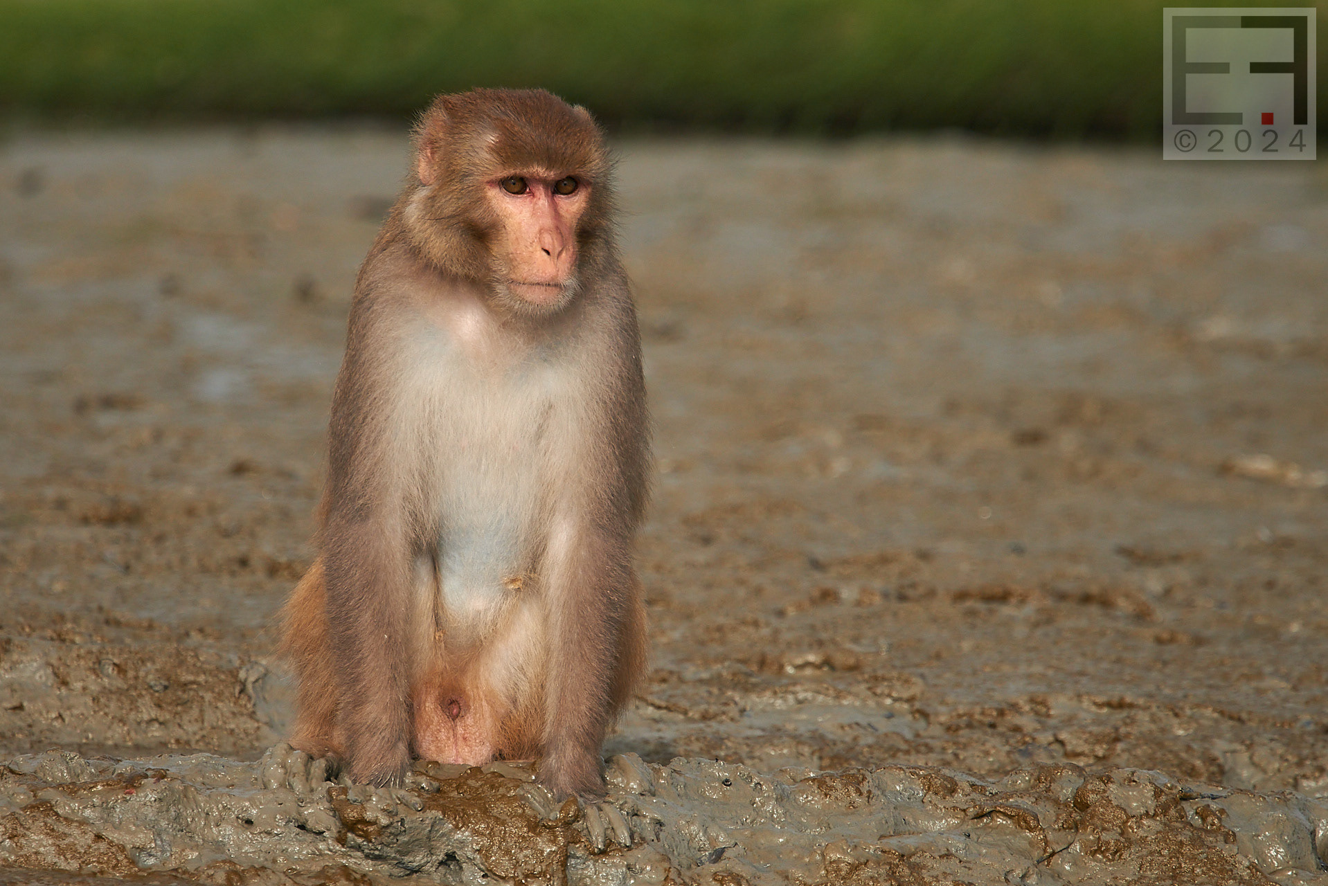 "Macaque’s gaze". Along the riverside, a male of rhesus macaque sits, her expressive eyes mirroring the tranquility of the surroundings.